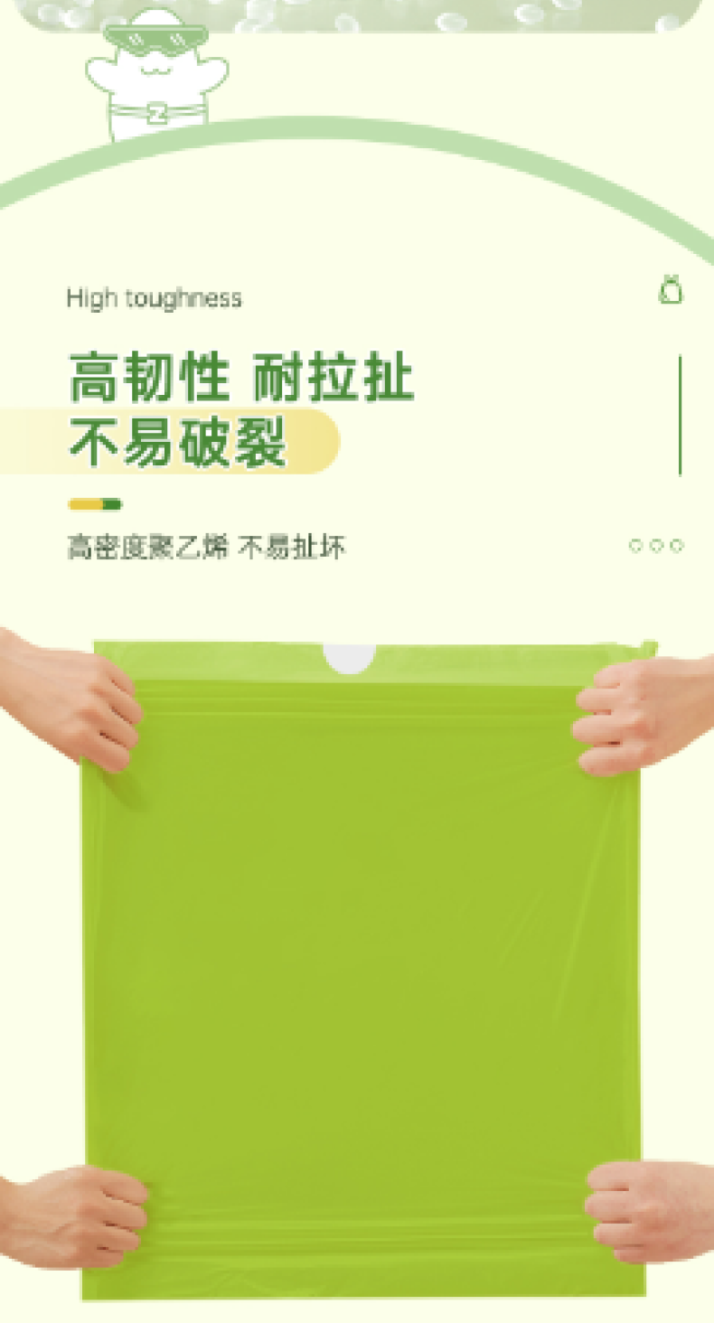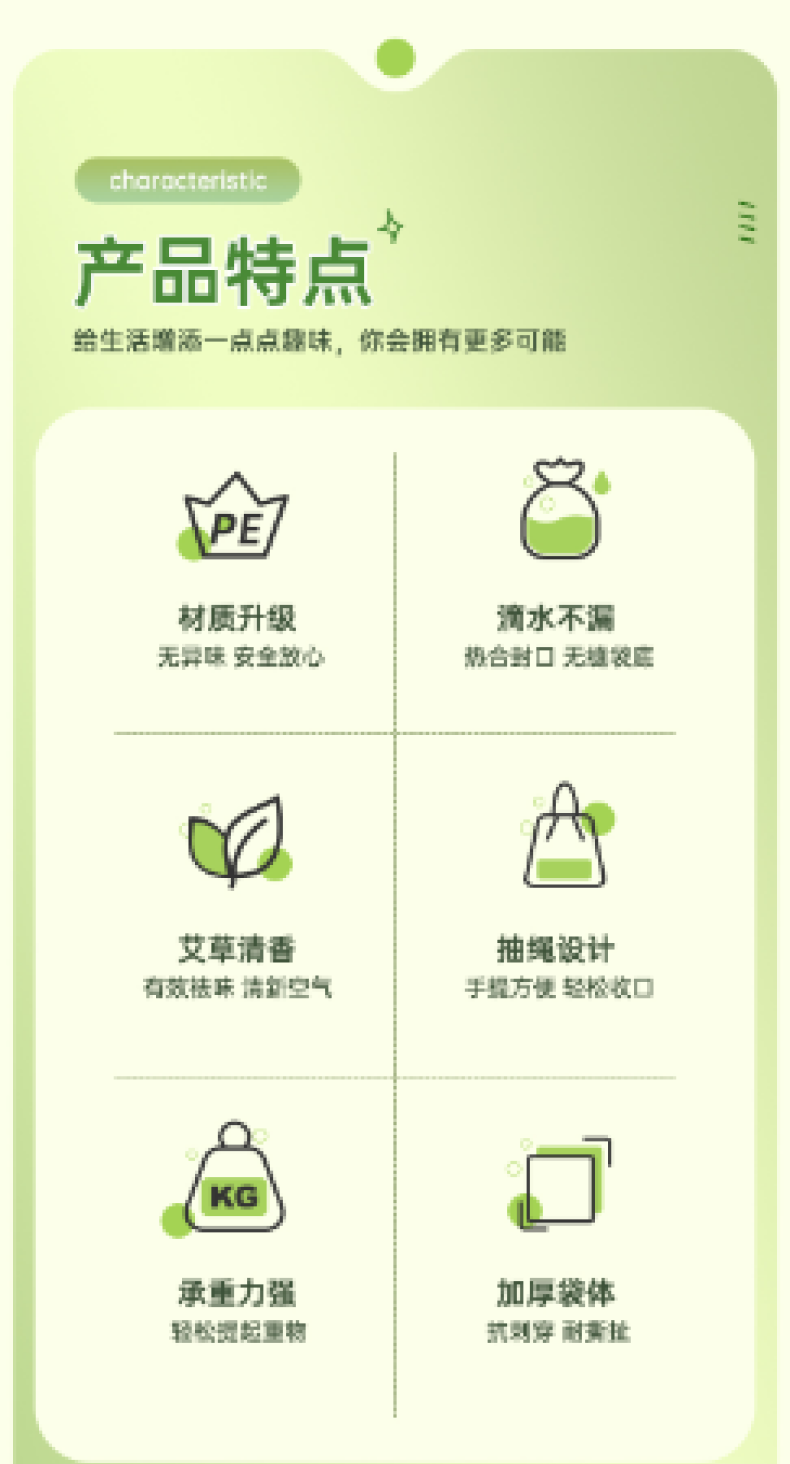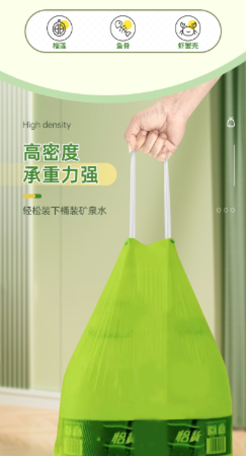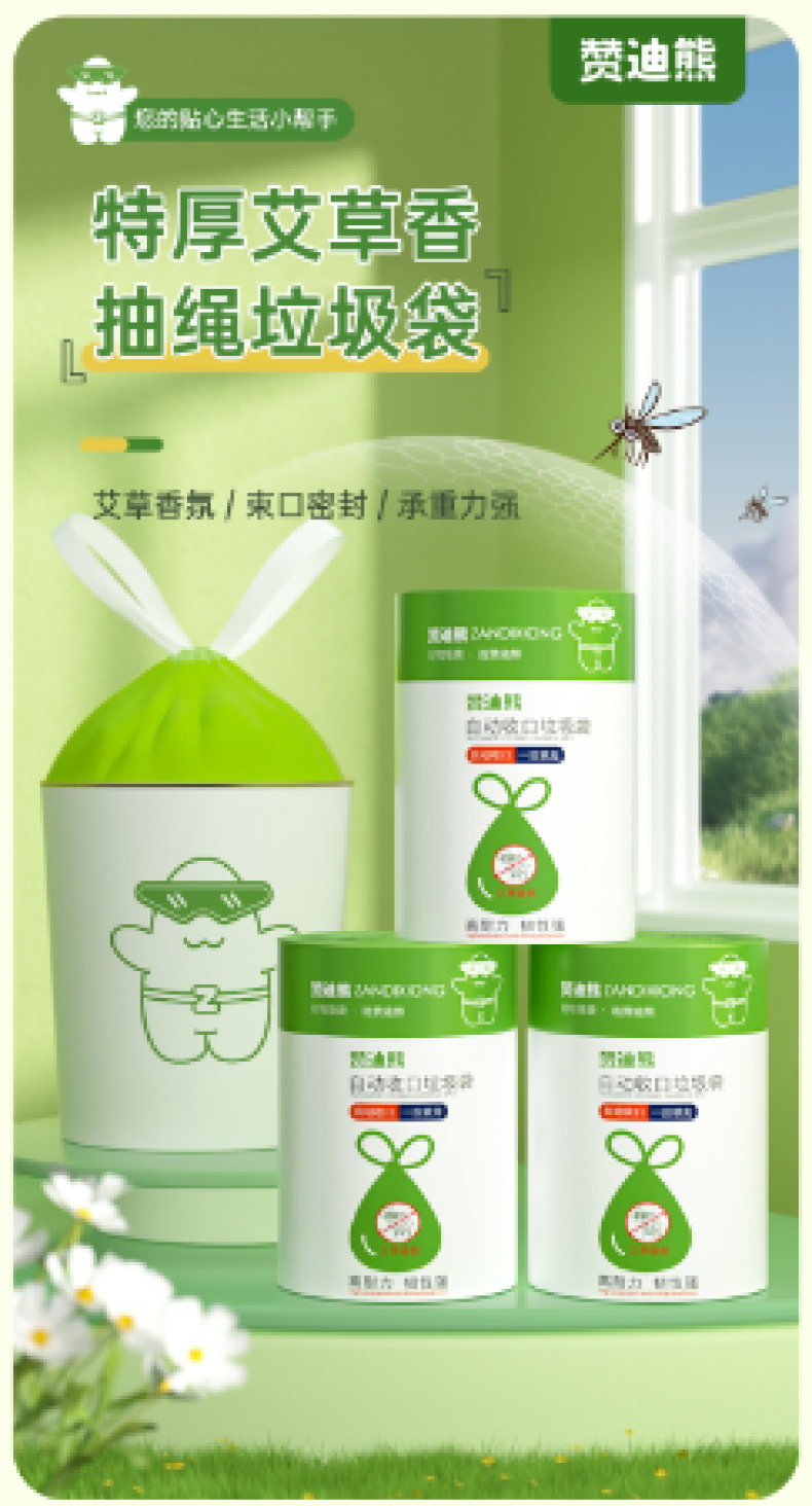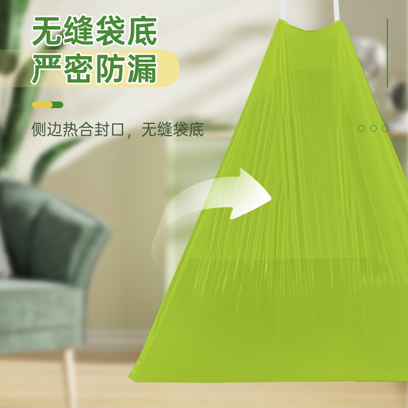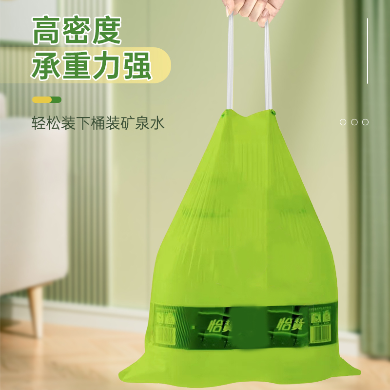 【4大卷8.8元】加厚艾草清香绿色大号抽绳式垃圾袋不脏手提式家用