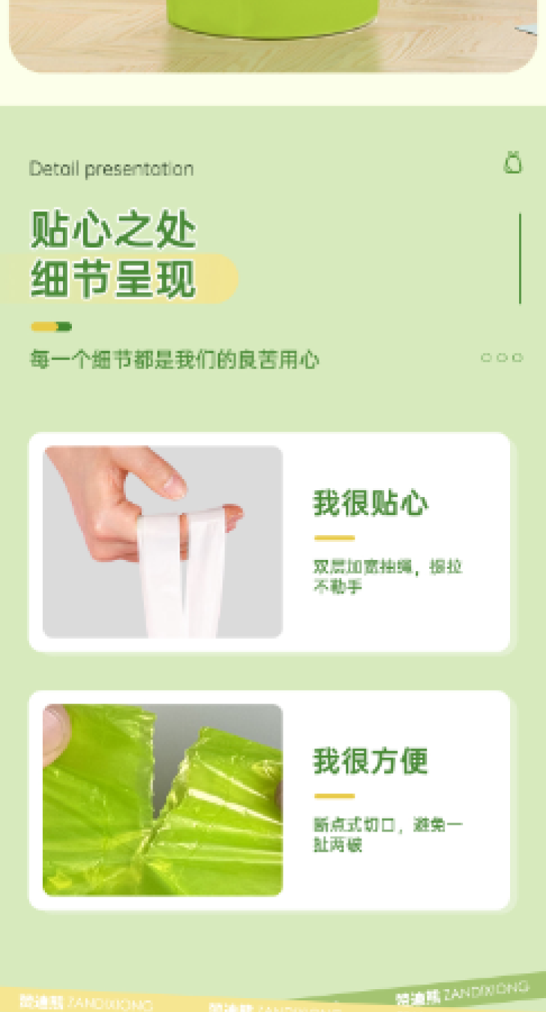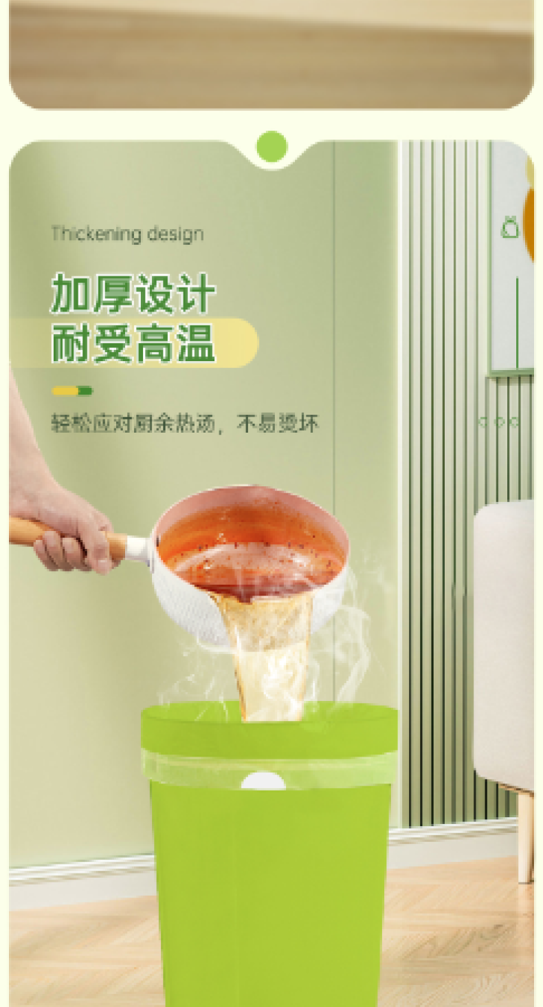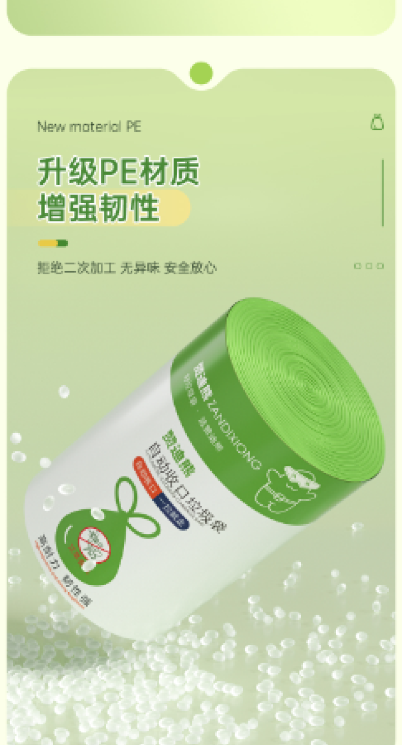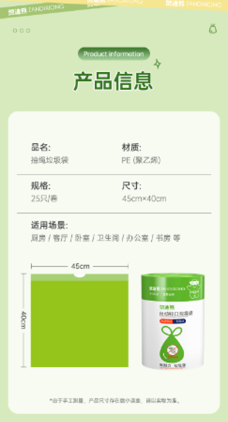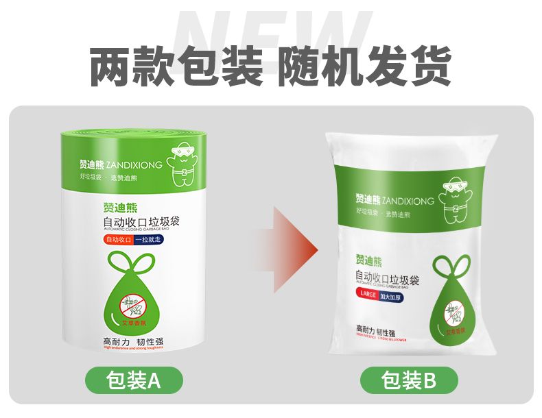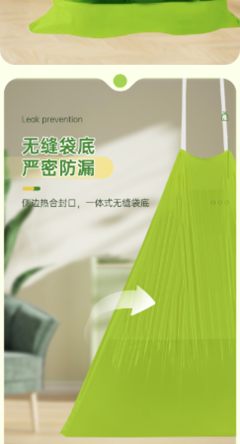 【4大卷8.8元】加厚艾草清香绿色大号抽绳式垃圾袋不脏手提式家用