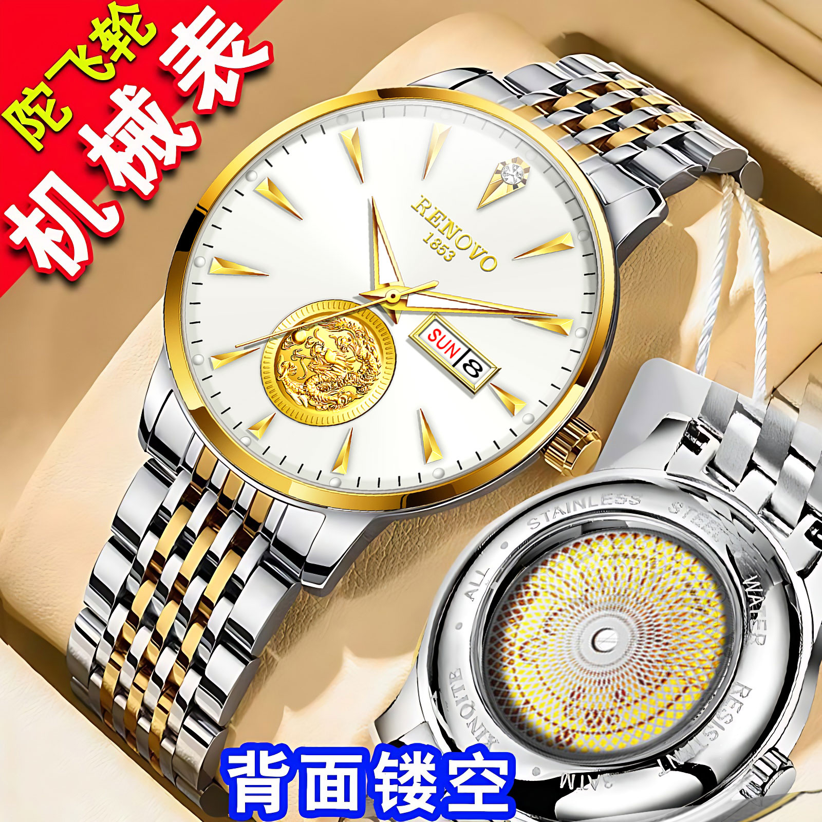 (钢)间金白【进口镂空机芯+精钢实心表带】
