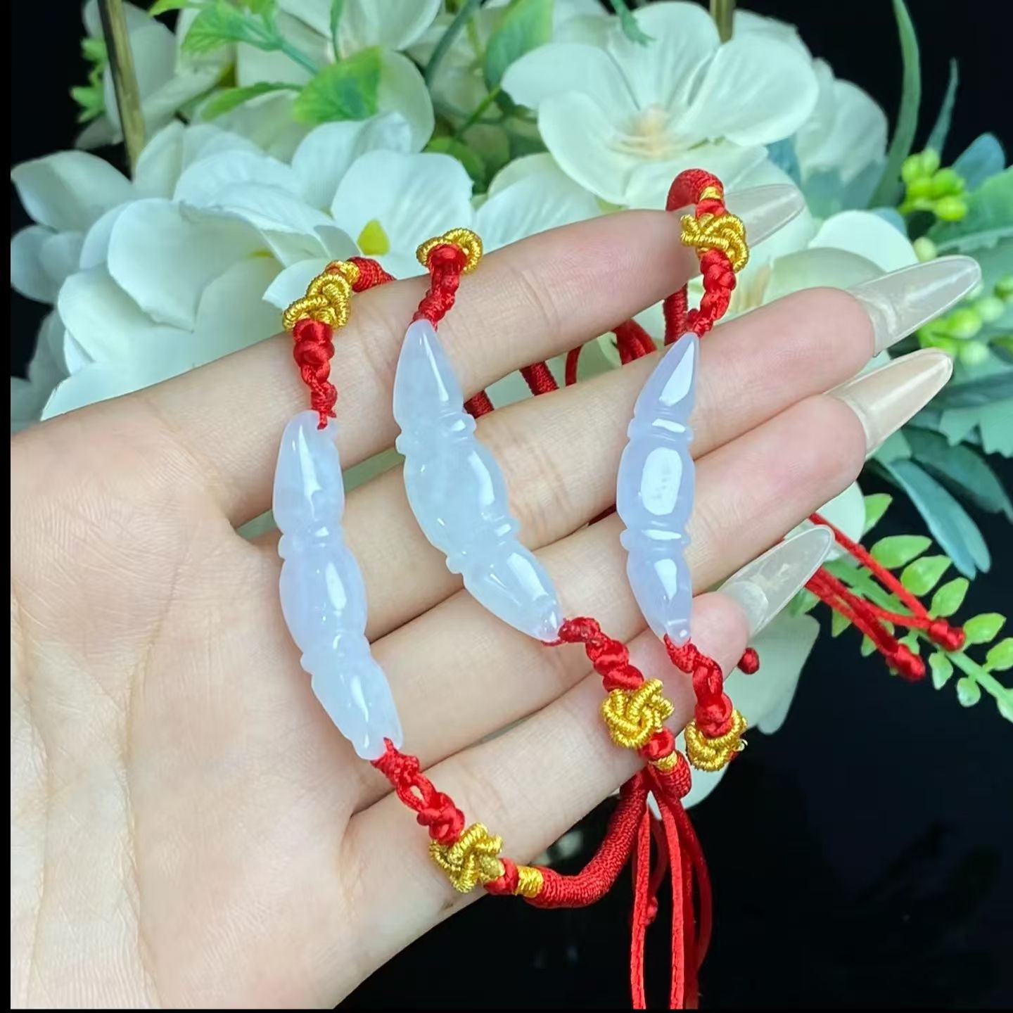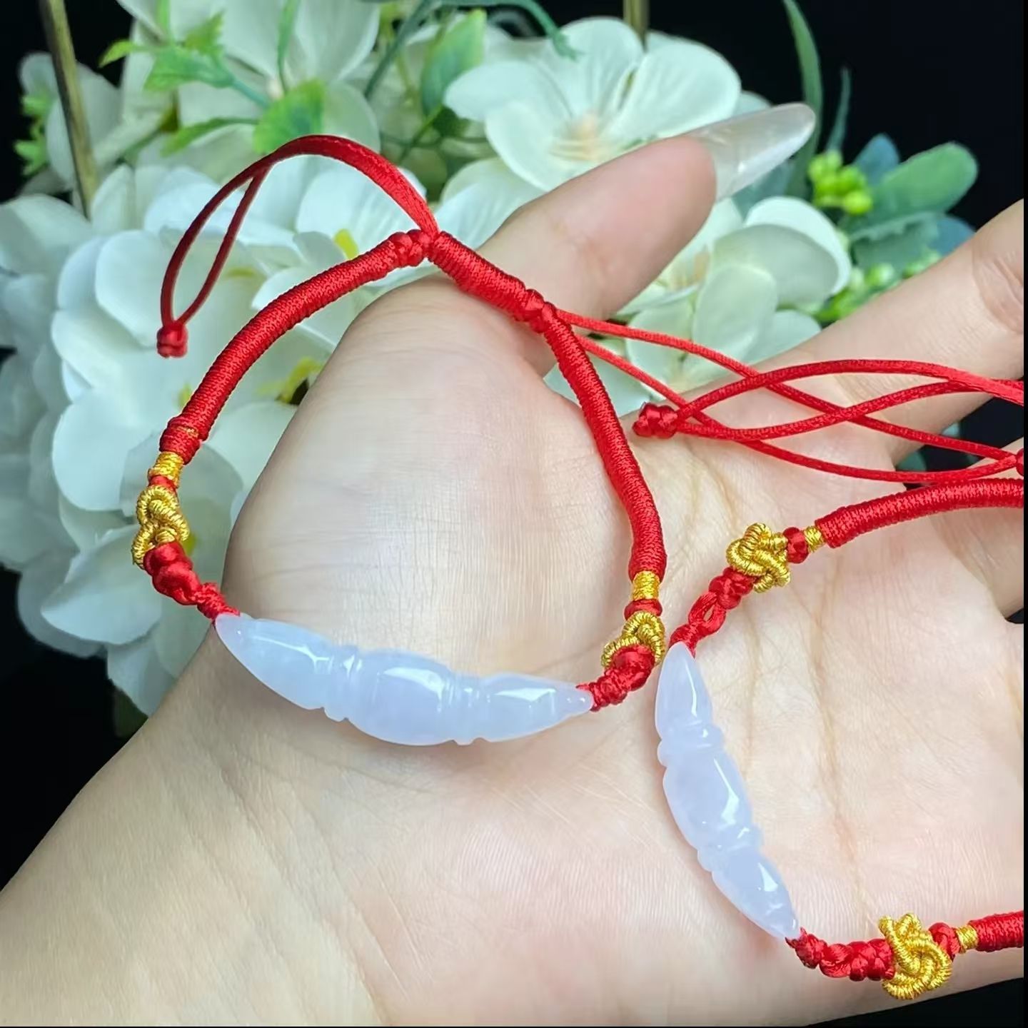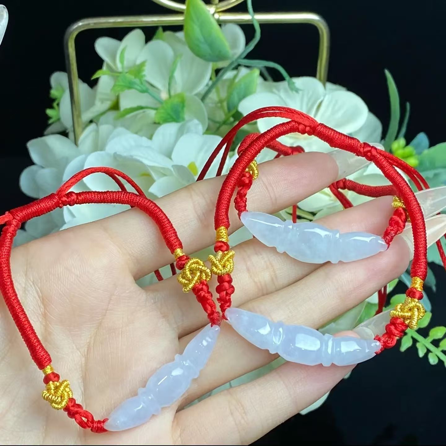 天然A货翡翠藕红绳手串 简约时尚手工编织百搭
