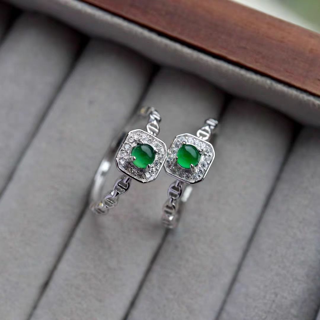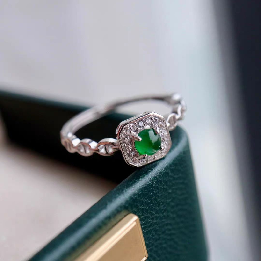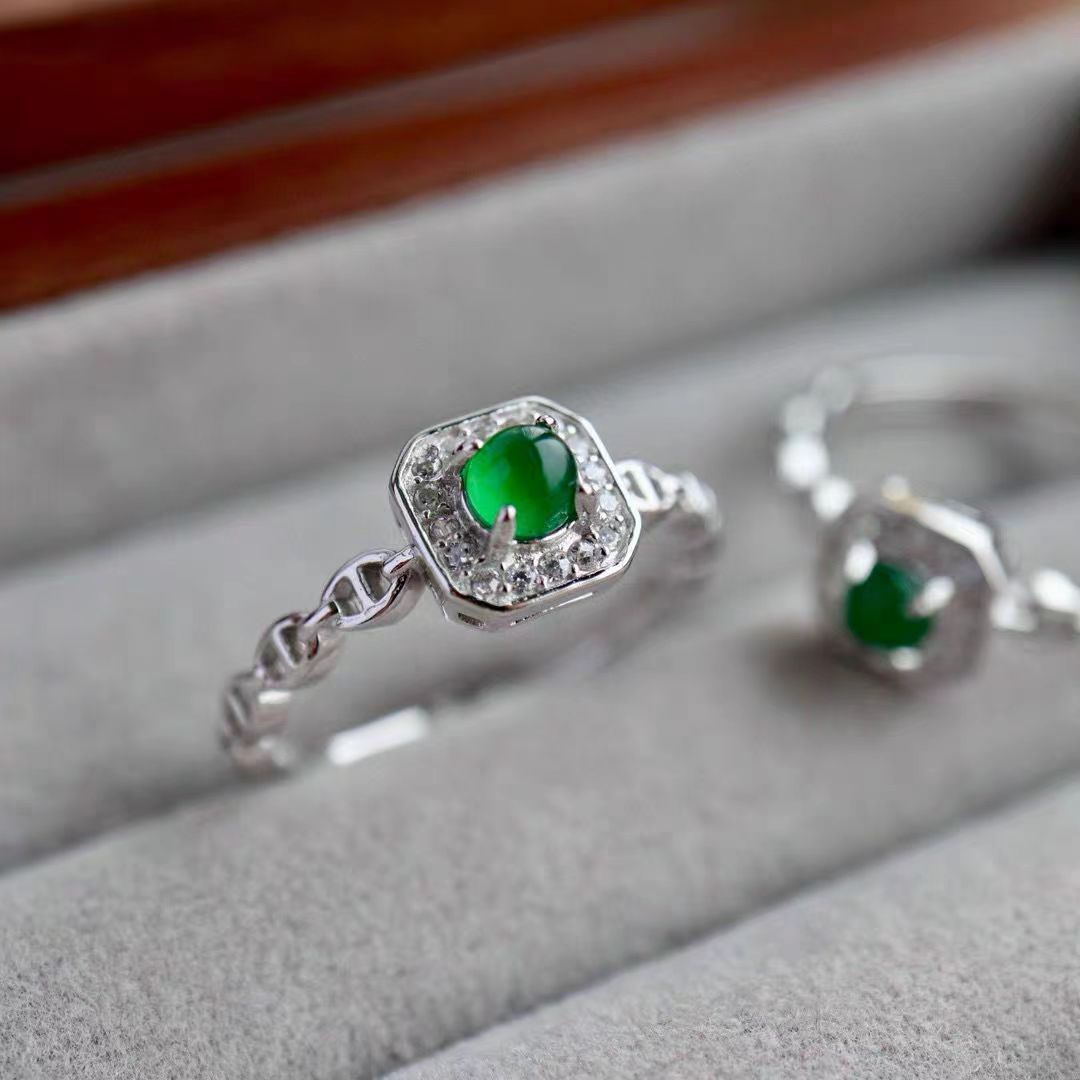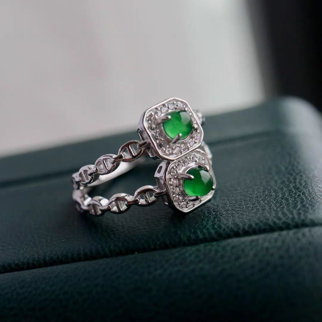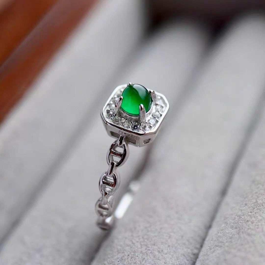 天然A货翡绿蛋面戒指