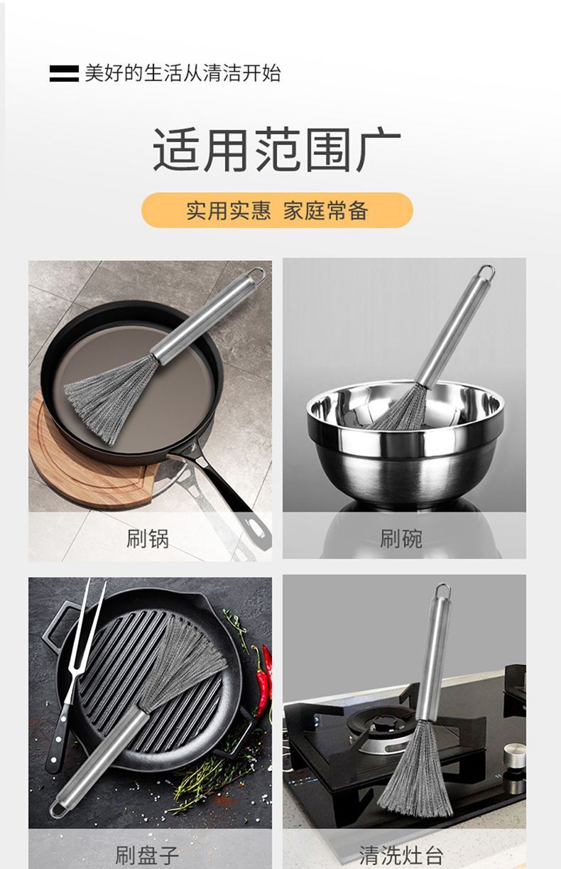 不锈钢锅刷清理家用多功能洗锅刷子去污清洗工具可挂式厨房刷清扫